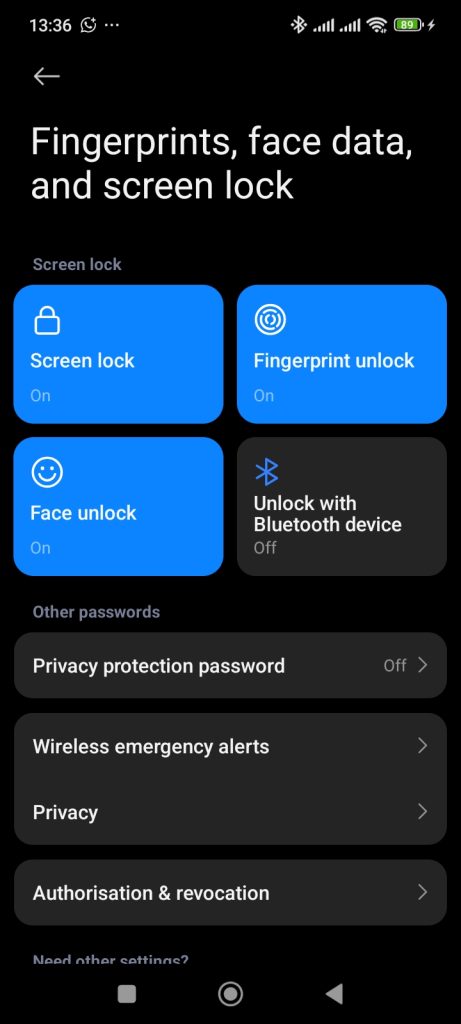 This feature comes under the Settings menu; => FingerPrint,face data & screen lock => Privacy => More settings => Theft Protection => Use Remote Lock. This can also be found as a typically part of Google’s “Find My Device” service. Below is a step-by-step procedure to activate the above settings: