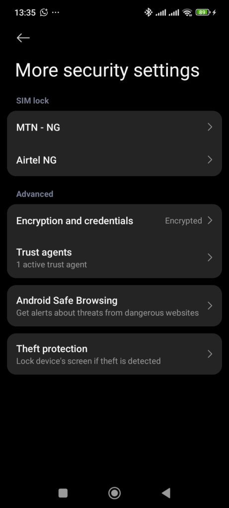 • Look for and tap on Theft protection.